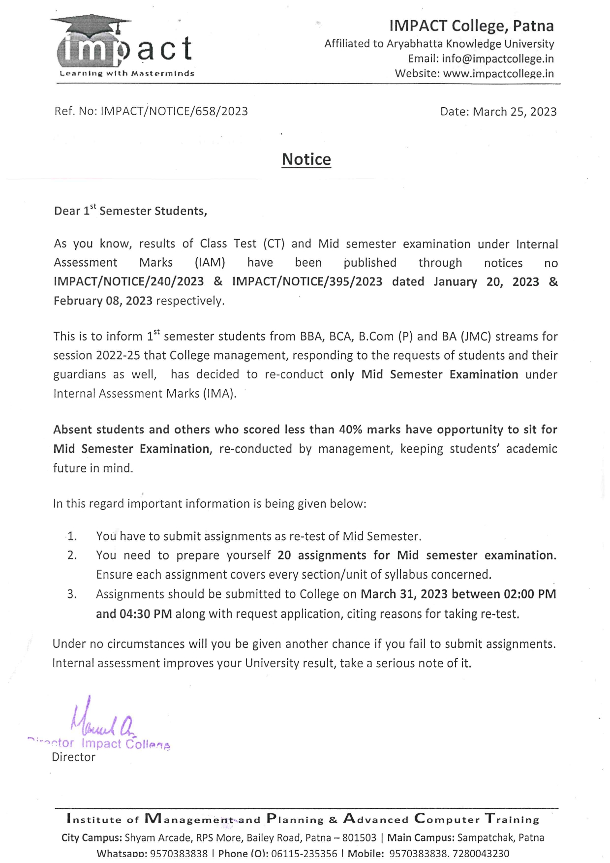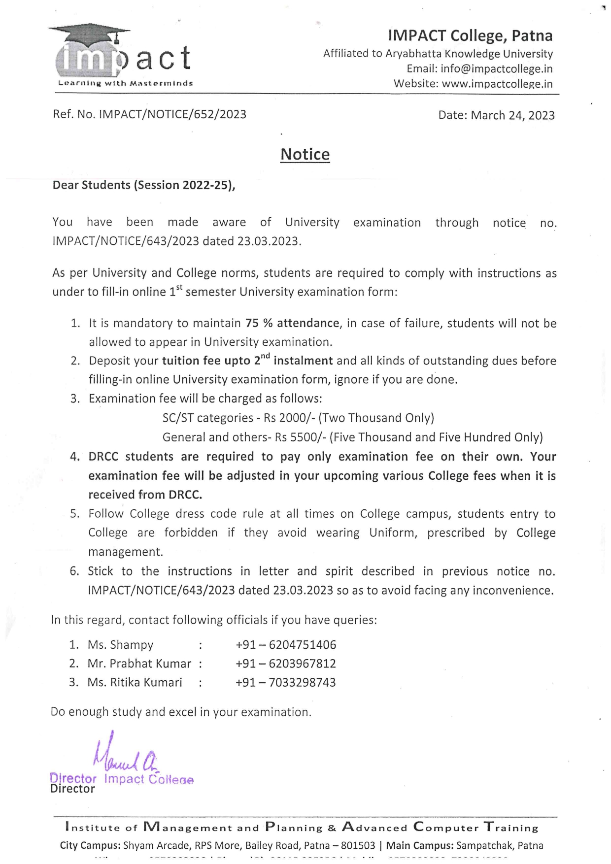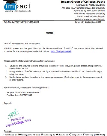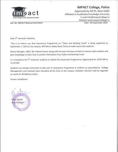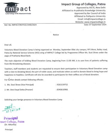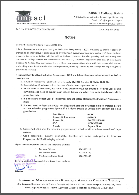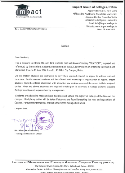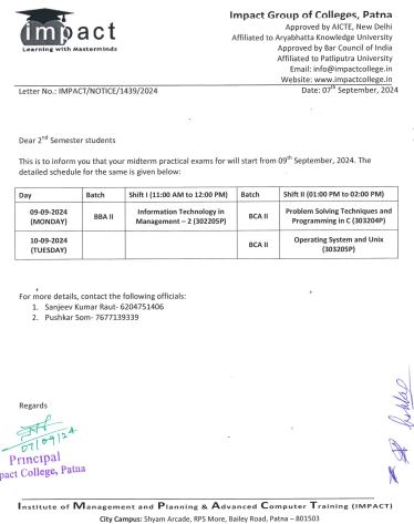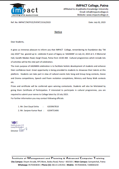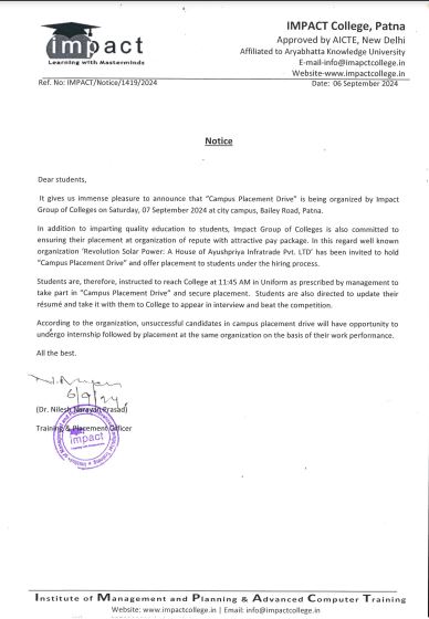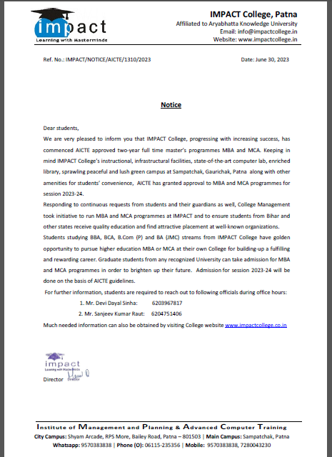 Without casting a doubt on its dedication to promote students’ well-being and success and vision to ensure high standard in education, I term IMPACT the best College in Bihar. I will always be grateful to my director for his help and guidance.