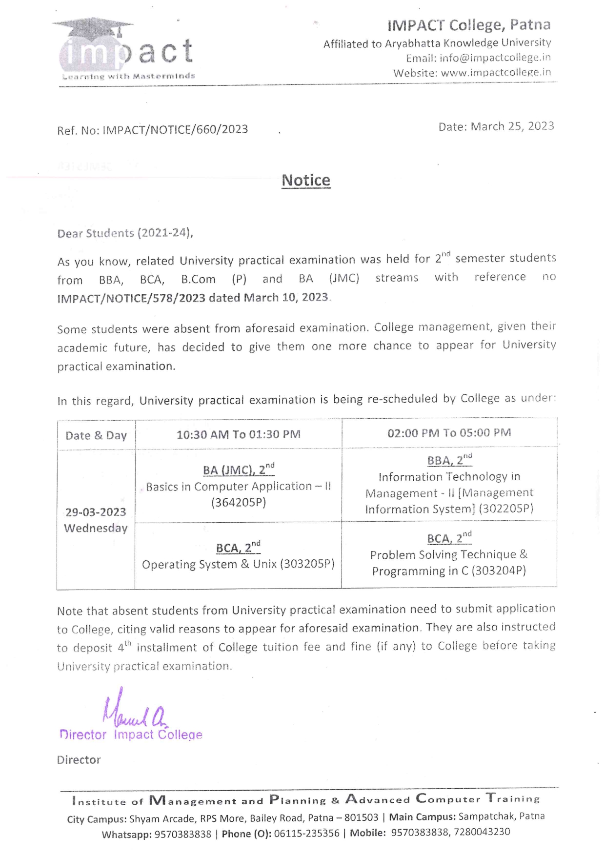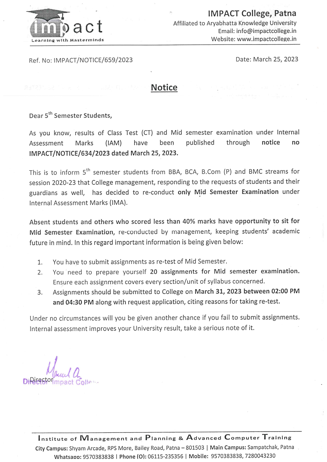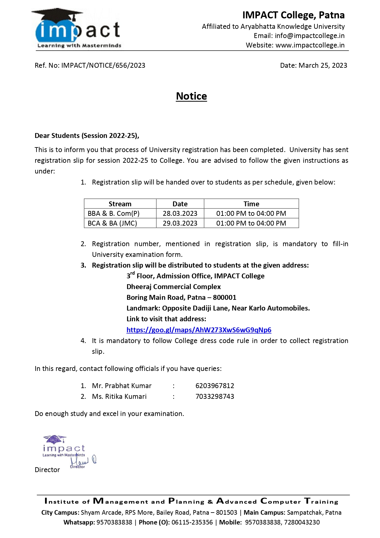 Without casting a doubt on its dedication to promote students’ well-being and success and vision to ensure high standard in education, I term IMPACT the best College in Bihar. I will always be grateful to my director for his help and guidance.